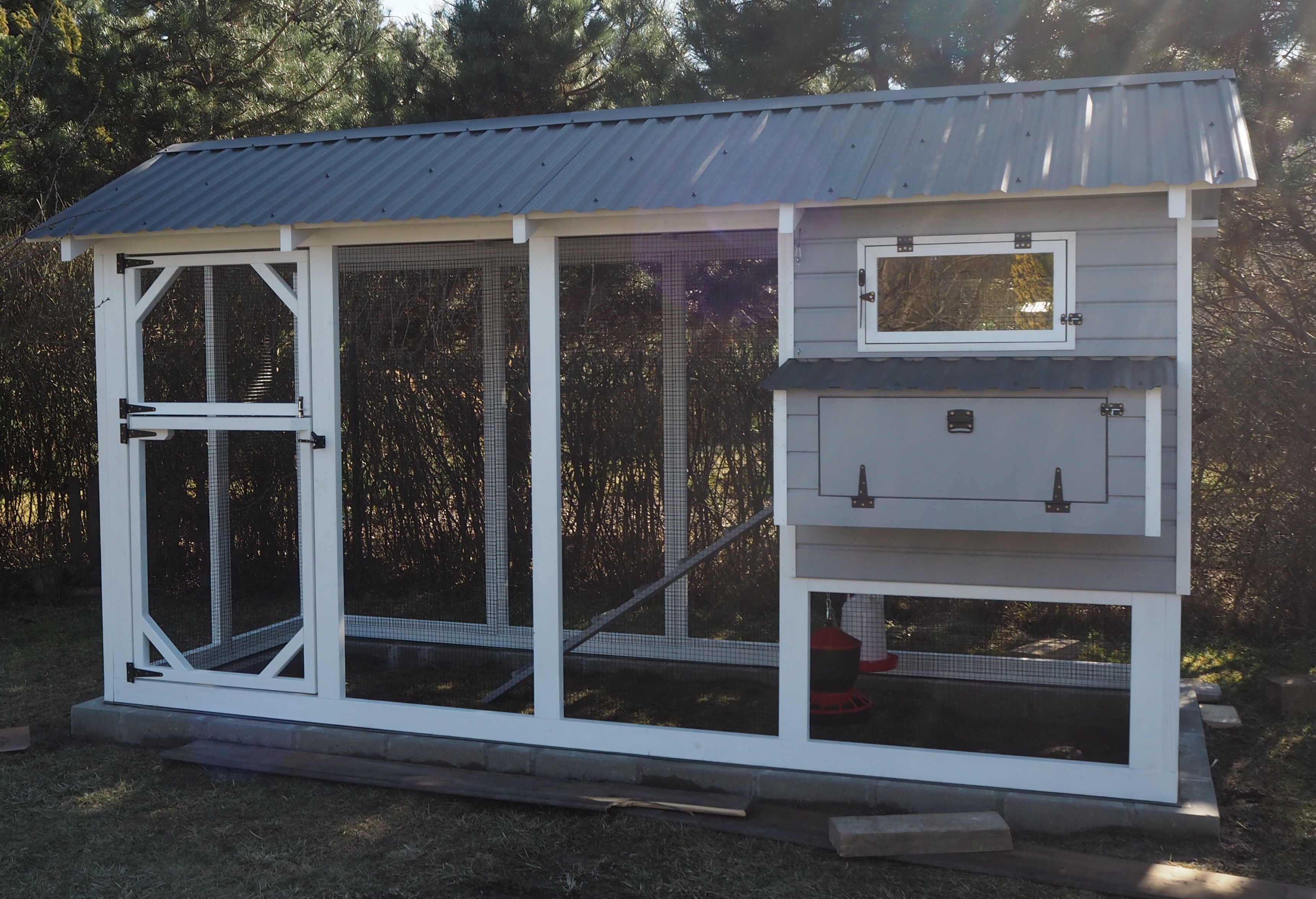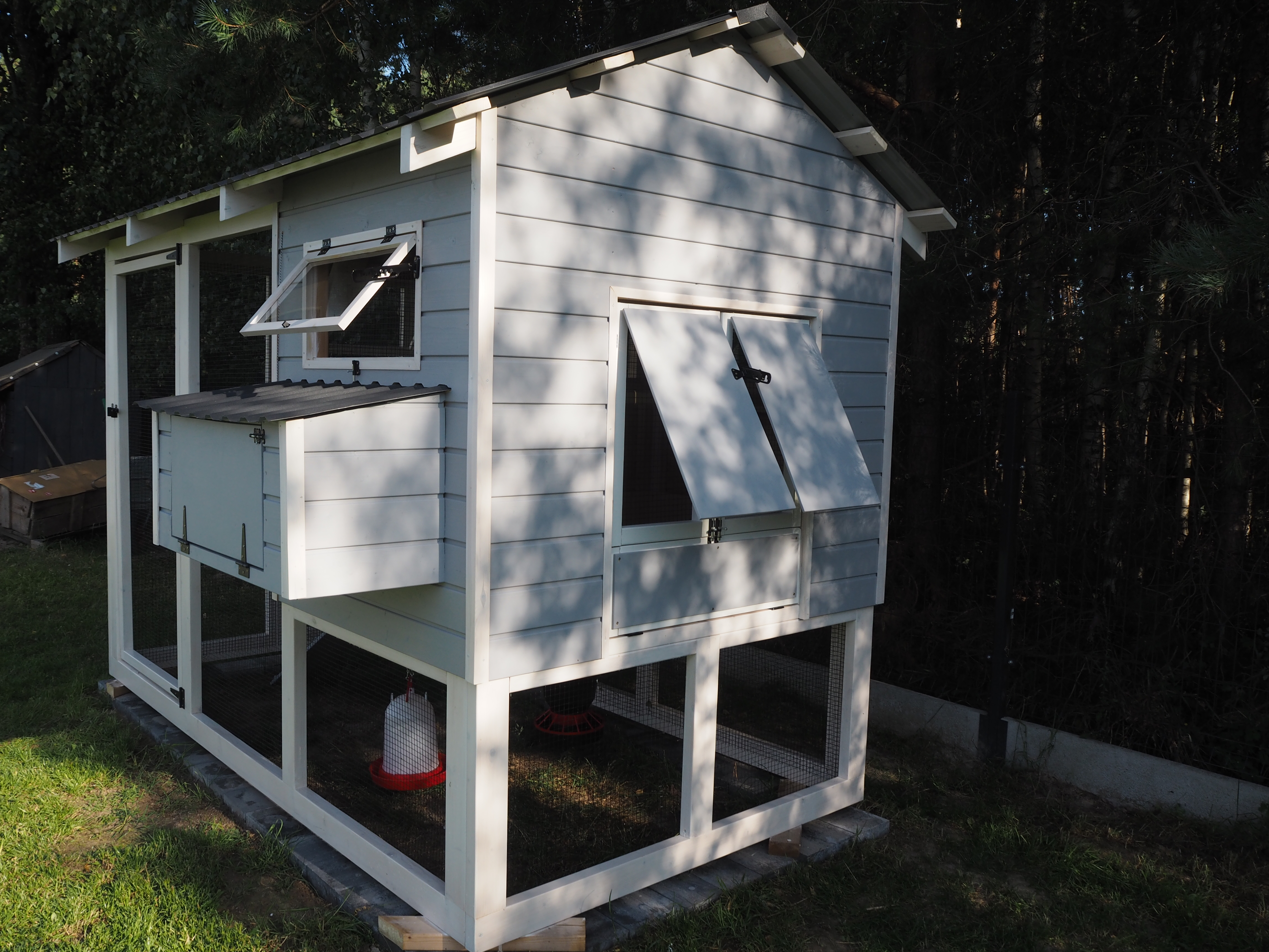 Przywozimy kurnik w całości lub elementach. Ustawiamy go na wcześniej przygotowanym miejscu przez właściciela.